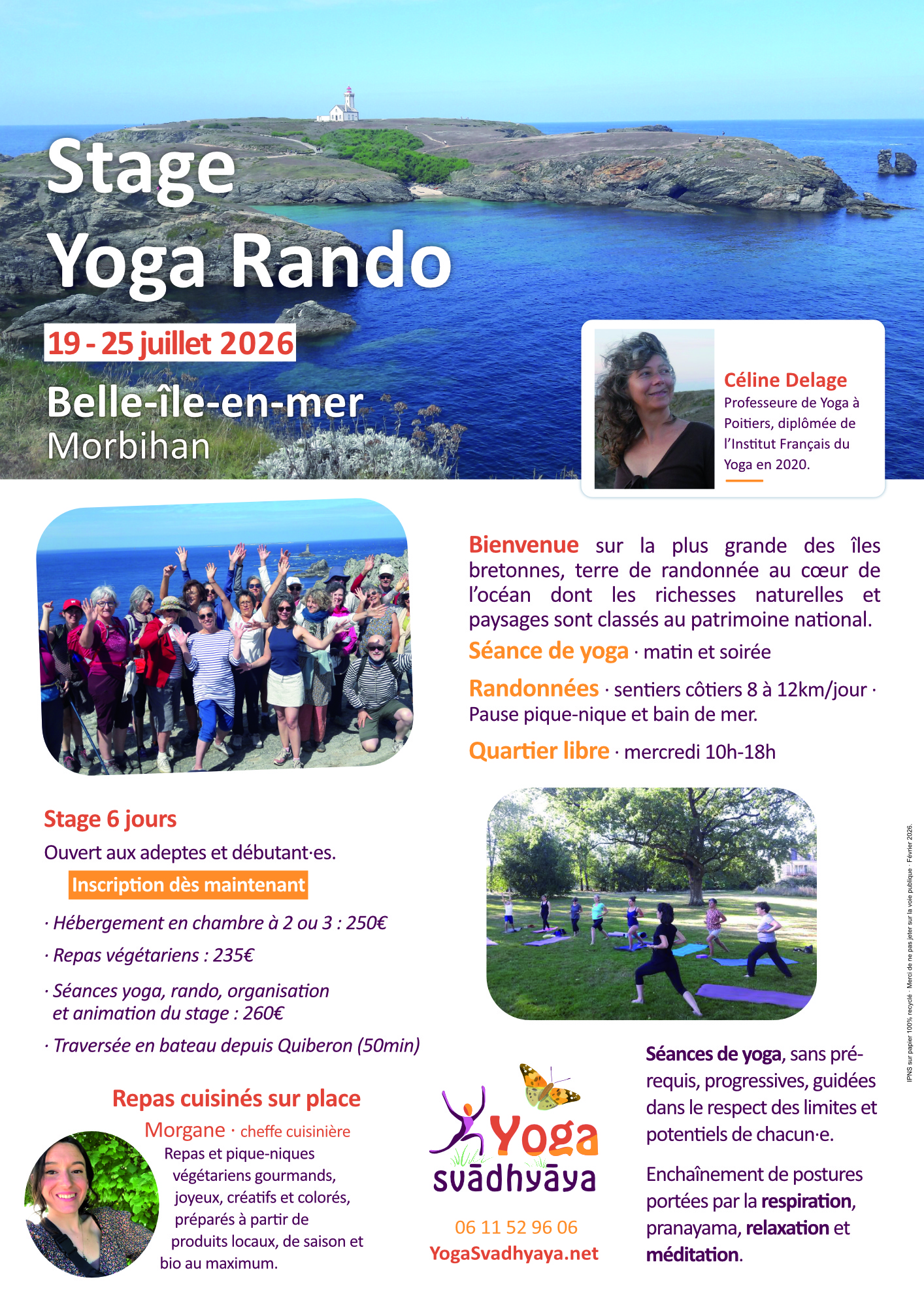 Prochain stage yoga randonnées, à Belle île en mer ! du 19 au 25 Juillet 2026.